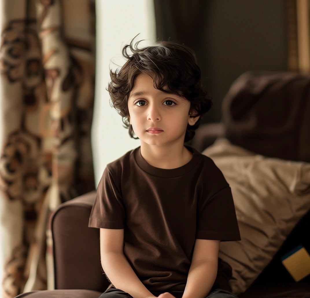 تي شيرت أساسي باللون البني الشوكولاتة